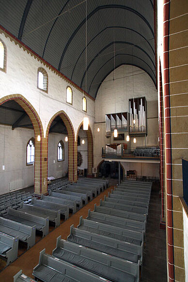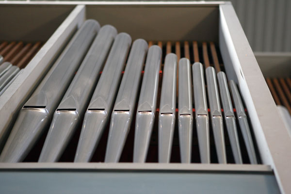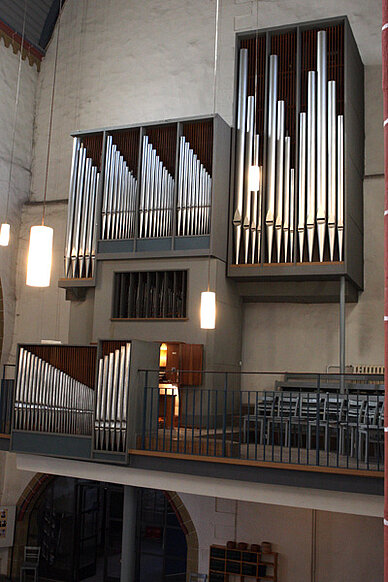 38 Register verteilen sich auf 3 Manuale (Hauptwerk, Brustwerk, Rückpositiv) und Pedal.